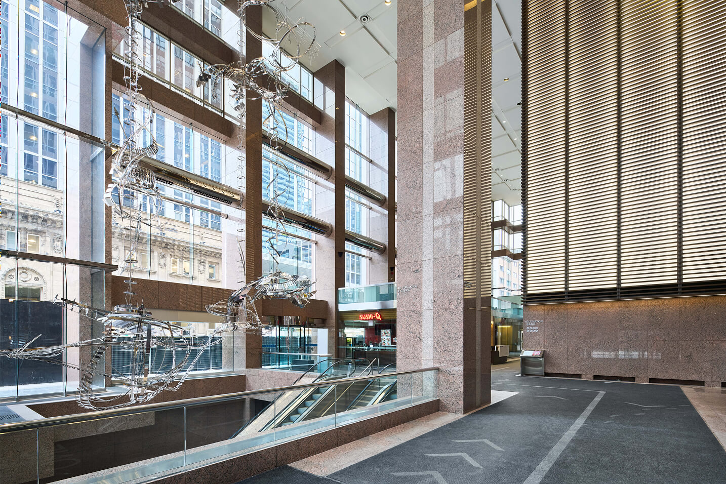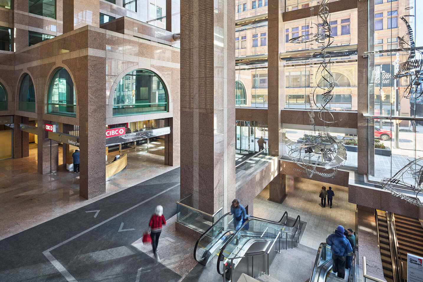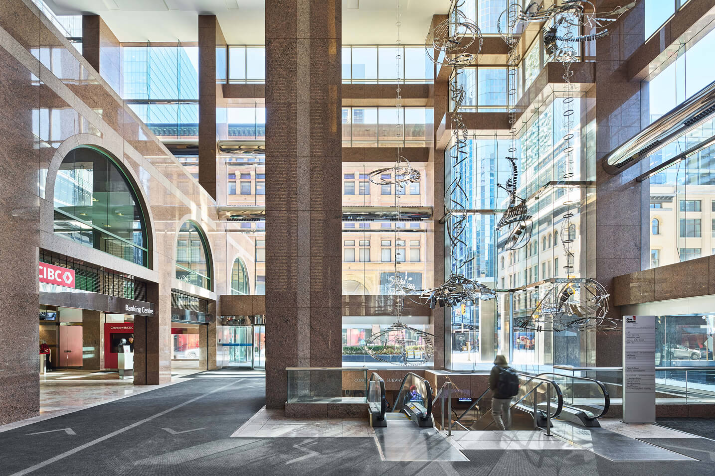 One Queen Street East is a unique 503,000-square-foot complex that harmoniously blends Toronto’s storied past with cutting-edge design. This remarkable property consists of two distinct buildings, seamlessly connected by a five-story glass atrium that serves as both a physical and architectural bridge between eras.